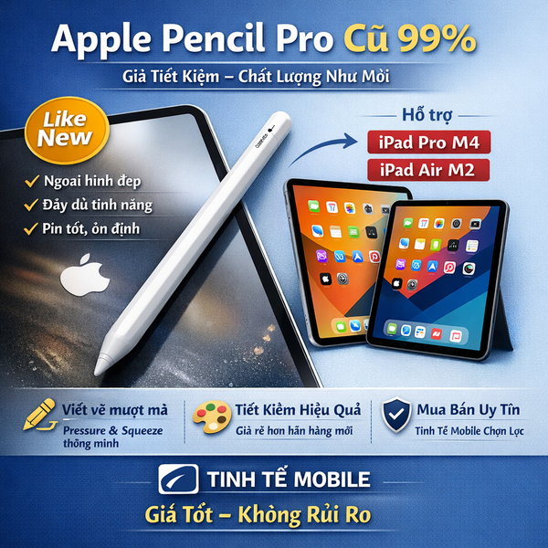 Apple Pencil Pro cũ 99% là những sản phẩm đã qua sử dụng rất ít, ngoại hình gần như mới, đầy đủ tính năng và chất lượng trải nghiệm không khác biệt đáng kể so với hàng mới. Đây là lựa chọn thông minh cho người dùng muốn tối ưu chi phí nhưng vẫn cần bút cảm ứng cao cấp nhất của Apple.